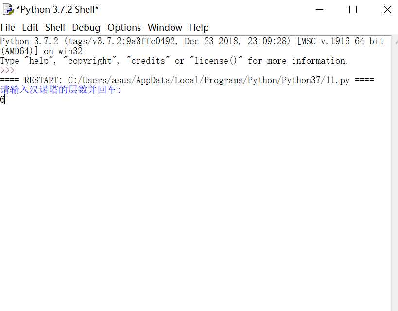 n=int(input("请输入汉诺塔的层数并回车:\n"))