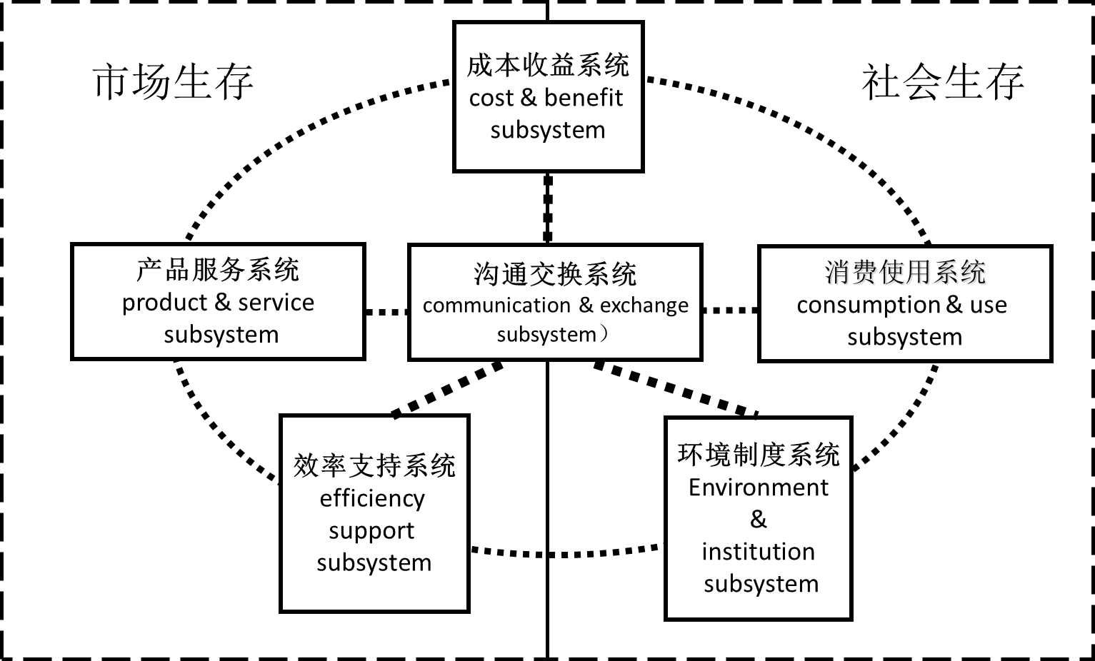 6、环境制度子系统:该子系统旨在为上述五个子系统创造良好的“硬环境”和“软环境”,是企业“生存营销”。