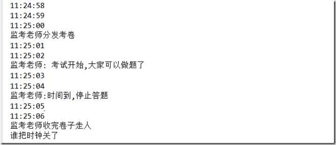 简单写个类似的例子,描述下我认为的观察者模式,一个考试Exam,一个闹钟类RingBell,闹钟一直在走,当闹钟到11.25分就去通知考试开始,中间过程省略一直到收卷结束。