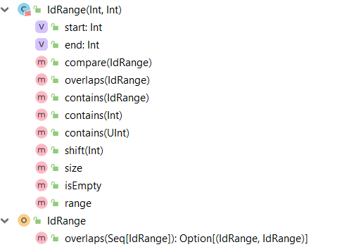 case class IdRange(start: Int, end: Int) extends Ordered[IdRange]