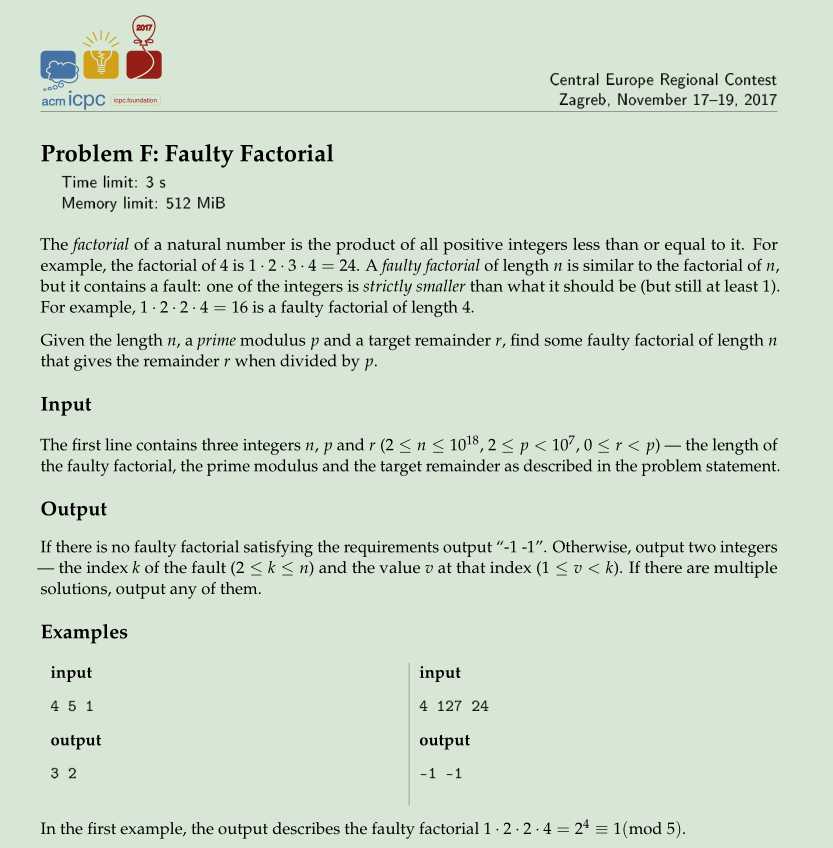 CERC2017 F: Faulty Factorial 简单数论题