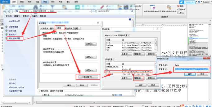 计算机-->属性-->高级系统设置-->环境变量-->Path变量值添加;.exe的文件路径截止到上级文件夹