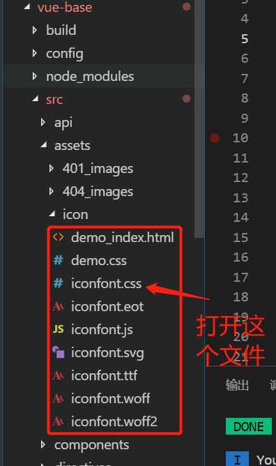 4: 把下载的文件丢入vue项目的 assets -> icon 文件夹里面,