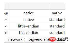 在Format string 的首位,有一个可选字符来决定大端和小端,列表如下: