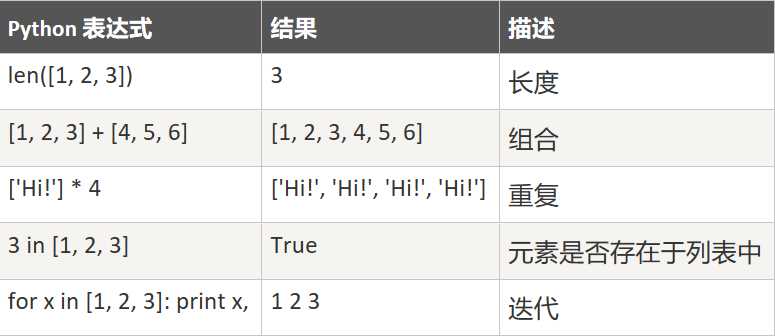 列表对 + 和 * 的操作符与字符串相似。+ 号用于组合列表,* 号用于重复列表。