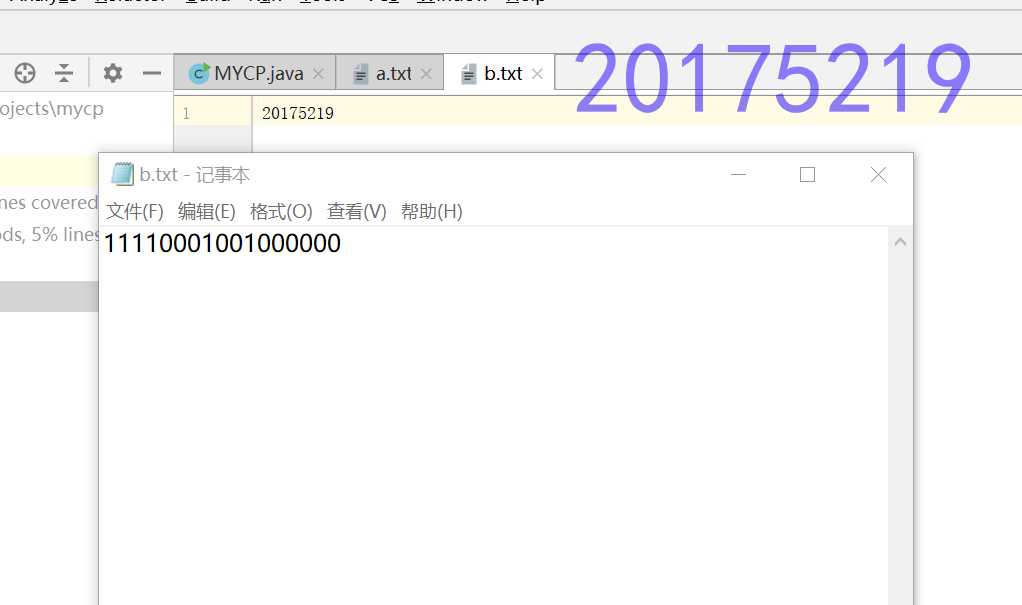java MyCP -xt XXX1.bin XXX2.txt 用来二进制文件把转化为文本文件(内容为十进制数字)