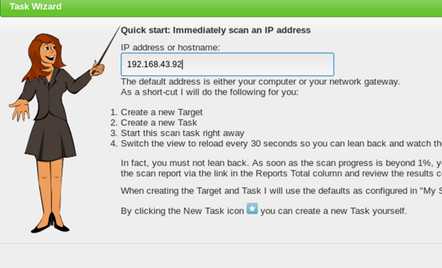 https://127.0.0.1:9392后登录Scans->Tasks->Task Wizard问题: