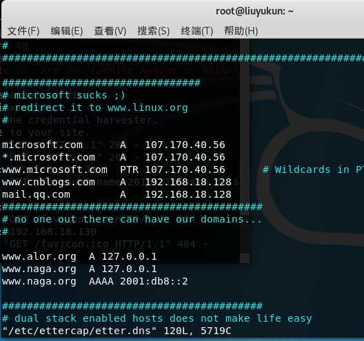 mail.qq.com A 192.168.18.128 //IP要换成自己的kali主机IP