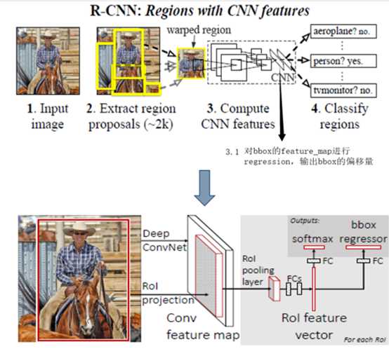 e.Regression部分训练完毕后,输入由ss提出的区域,输出修正候选框位置。结合cls信息做NMS,最后输出detection结果。