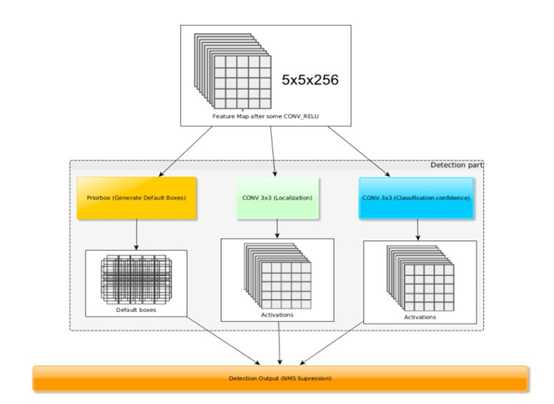 SSD将不同的特征图汇集在一起,来做检测任务