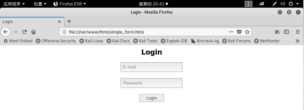 在浏览器中输入/var/www/html/simple_form.html打开网页如下所示: