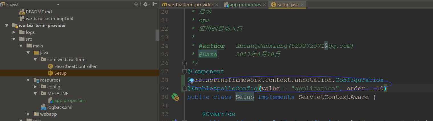 包 :import com.ctrip.framework.apollo.spring.annotation.EnableApolloConfig;