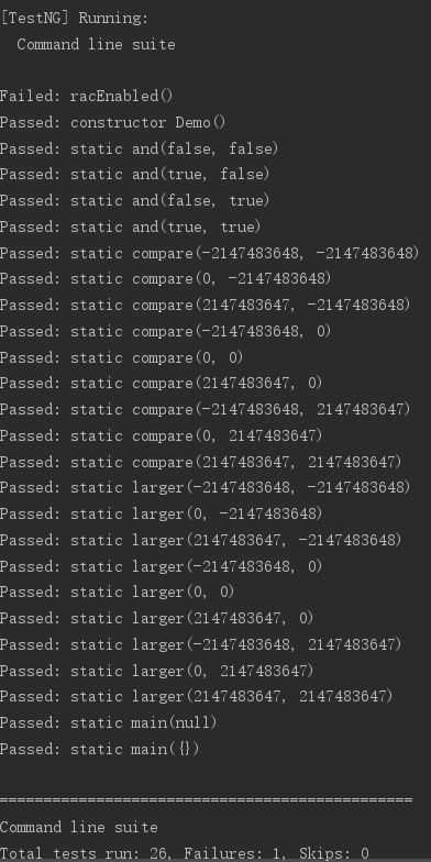 不难发现,boolean的测试覆盖了全部的四种可能,而数值测试则基本为测试边缘点,即0和int型的最大最小值。