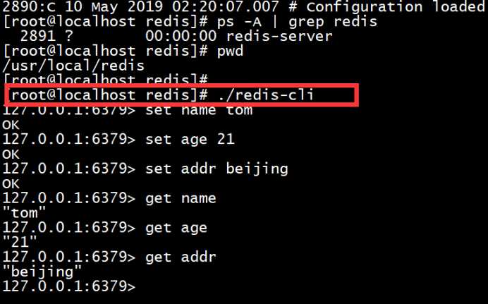在以上实例中我们使用了 Redis 的 SET 和 GET 命令。键为 name,对应的值为 runoob。