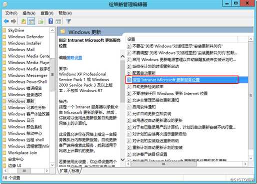 步骤4:在 Windows Update 详细信息窗格中,双击“指定 Intranet Microsoft 更新服务位置”。