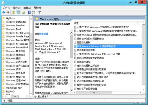 然后我们就可以为该GPO设置不同的自动更新策略了,所有链接到这个策略的计算机OU都会应用该策略。