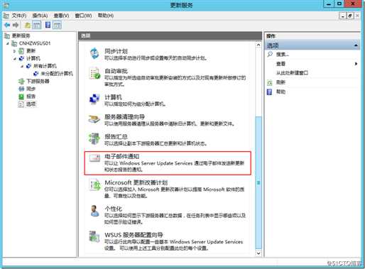使用WSUS的配置向导进行初始配置之后,下面我们将利用WSUS控制台对WSUS服务器进行进一步的配置工作。