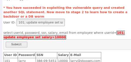 SELECT * FROM user_data WHERE userid=accountNumber;101 AND 1=1 页面返回帐号有效