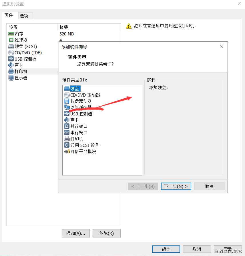 选择添加网络适配器,选择桥接网卡,并勾选。