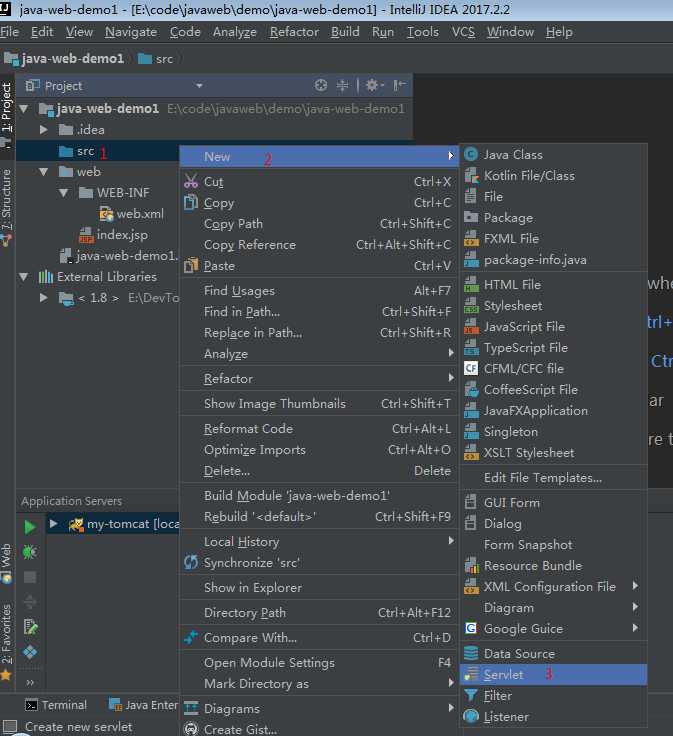 src右键,选择新建servlet,
