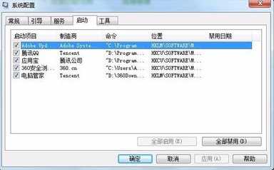 7、如果想那个项目在启动计算机是不启动 就在那个项目前面的选择框中勾掉选项 如下图