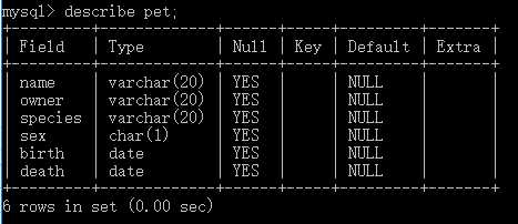 先创建数据库menagerie,再启用数据库,然后在库中创建表pet。