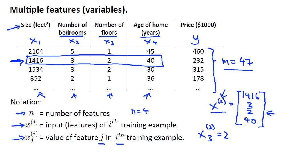 n:特征数量。例如房子有面积、房间数、层数这三个特征。