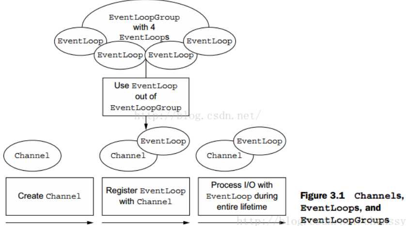 当一个连接到达时,Netty 就会注册一个 Channel,然后从 EventLoopGroup 中分配一个 EventLoop 绑定到这个Channel上,在该Channel的整个生命周期中都是有这个绑定的 EventLoop 来服务的。