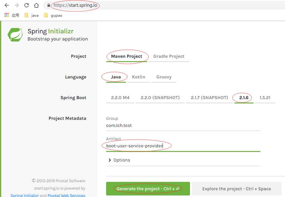 https://start.spring.io/ 进入spring Initializr ,创建服务提供者以及消费者的 springboot项目: