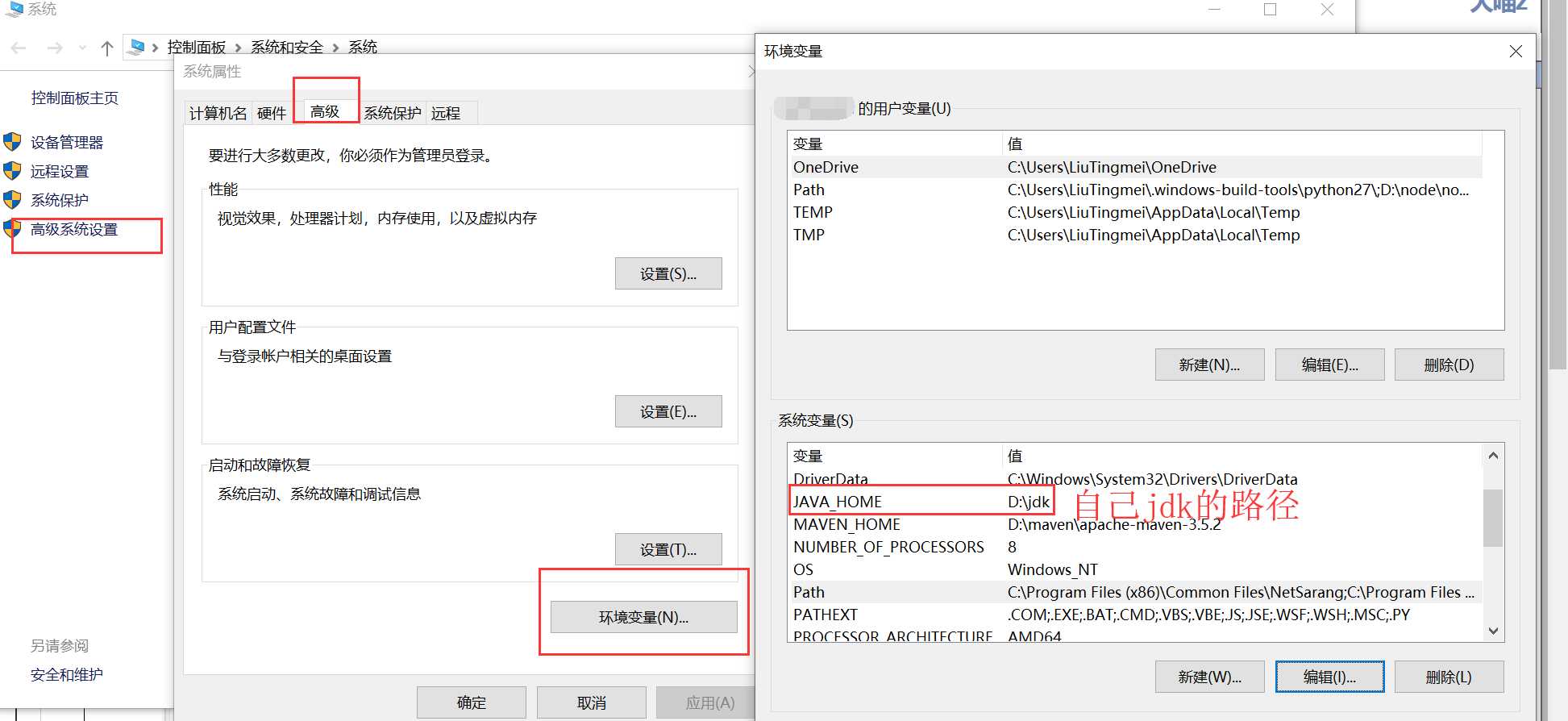 系统变量→新建 JAVA_HOME 变量 ,填写自己的jdk安装路径