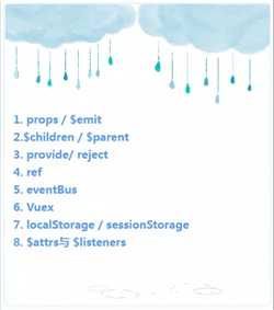 props; $parent / $children; provide / inject ; ref ; $attrs / $listenerseventBus ; vuexeventBus;Vuex;provide / inject 、$attrs / $listeners
