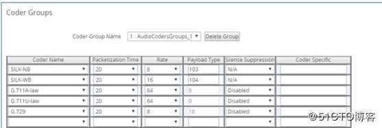 微软的Teams支持SILK通信协议,为了配合Teams的使用,需要配置如下Code,在code groups页面中,按照如图进行配置(SILK NB/WB OPUS需要通过SW/Teams许可激活)