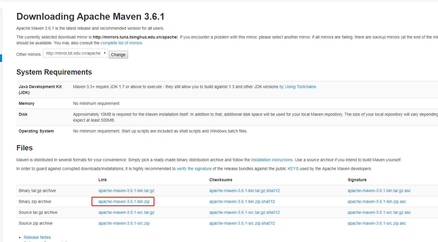 1.先到maven的官网下载安装包:http://maven.apache.org/download.cgi