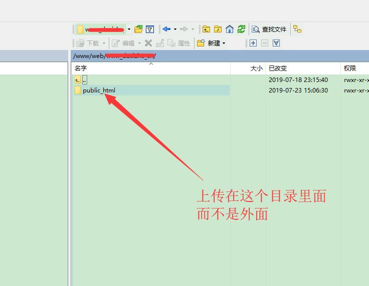 接下来用FTP软件把wordpress程序文件上传网站根目录,记住根目录是public_html这个目录,就是说要把wordpress程序上传到这个目录里面去,千万不传在public_html外面,否则运行不了;如下图: