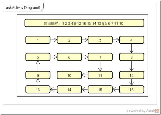 void PrintMatirxInCircle(int(*ppArray)[4], int iRows, int iColumns, int iStart) { int iEndX = iColumns - 1 - iStart; int iEndY = iRows - 1 - iStart; // 1.从左到右打印一行 for (int i = iStart; i <= iEndX; i++) { printf("%2d ", ppArray[iStart][i]); } // 2.从上到下打印一列 if (iStart < iEndY) { for (int i = iStart + 1; i < iEndY; i++) { printf("%2d ", ppArray[i][iEndX]); } } // 3.从右到左打印一行 if (iStart < iEndX && iStart < iEndY) { for (int i = iEndX - 1; i >= iStart; i--) { printf("%2d ", ppArray[iEndY][i]); } } // 4.从下到上打印一行 if (iStart < iEndX && iStart < iEndY - 1) { for (int i = iEndY - 1; i >= iStart + 1; i--) { printf("%2d ", ppArray[i][iStart]); } } } void PrintMatirxClockwisely(int (*ppArray)[4], int iRows, int iColumns) { if (NULL == ppArray || iRows <= 0 || iColumns <= 0) { return; } int iStart = 0; while (iColumns > iStart * 2 && iRows > iStart * 2) { // 打印一圈数据 PrintMatirxInCircle(ppArray, iRows, iColumns, iStart); iStart++; } } void PrintMatirxTestFunc() { cout << "\n\n --------------- PrintMatirxTestFunc Start -------------->" << endl; int aiArray[4][4] = {{1, 2, 3, 4}, {5, 6, 7, 8}, {9, 10, 11, 12}, {13, 14, 15, 16}}; PrintMatirxClockwisely(aiArray, 4, 4); cout << "\n\n --------------- PrintMatirxTestFunc End -------------->" << endl; }