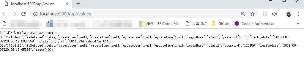 [Route("api/[controller]")] [ApiController] public class ValuesController : ControllerBase { SQLHelper _sqlHelper; public ValuesController(SQLHelper sqlHelper) { _sqlHelper = sqlHelper; } // GET api/values [HttpGet] public ActionResult<DataTable> Get() { return _sqlHelper.ExecuteDataTable("SELECT * FROM SYSUSER", null); } // GET api/update [HttpGet("update")] public ActionResult<int> Update() { SqlParameter[] cmdParms = new SqlParameter[] { new SqlParameter("@PASSWORD", DBNull.Value) }; return _sqlHelper.ExecuteNonQuery("UPDATE SYSUSER SET PASSWORD =@PASSWORD WHERE LOGINNAME=‘admin‘", cmdParms); } // GET api/update [HttpGet("UpdateTransaction")] public ActionResult<int> UpdateTransaction() { int rowsAffected = 0; SqlParameter[] cmdParms = new SqlParameter[] { new SqlParameter("@PASSWORD", "123456") }; using (var conn = _sqlHelper.GetDefaultSqlConnection()) { conn.Open(); var transaction = conn.BeginTransaction(); try { rowsAffected = _sqlHelper.ExecuteNonQuery(conn, "UPDATE SYSUSER SET PASSWORD =@PASSWORD WHERE LOGINNAME=‘admin‘", cmdParms, transaction); throw new Exception("test"); transaction.Commit(); } catch (Exception e) { transaction.Rollback(); throw e; } } return rowsAffected; } }