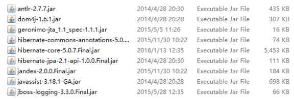 从图可以看出,hibernate5.0.7的解压s目录中包含一系列的子目录,这些子目录分别用于存放不同功能的文件,接下来针对这些子目录进行简单介绍,具体如下: