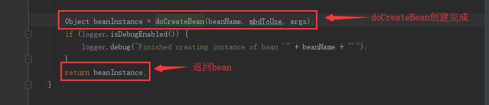 真正的创建我们的bean的实例对象的doCreateBean(beanName, mbdToUse, args)的方法: