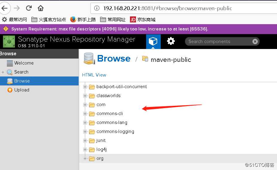 [root@meteor ~]# wget https://download.sonatype.com/nexus/3/latest-unix.tar.gz [root@meteor ~]# tar xfz nexus-3.11.0-01-unix.tar.gz -C /usr/local/ [root@meteor ~]# cd /usr/local/ [root@meteor local]# ln -s nexus-3.11.0-01 nexus [root@meteor local]# cd nexus [root@meteor nexus]# vim /etc/profile JAVA_HOME=/usr/java/latest MAVEN_HOME=/usr/java/maven PATH=$JAVA_HOME/bin:$MAVEN_HOME/bin:$PATH CLASSPATH=.:$JAVA_HOME/lib/dt.jar:$JAVA_HOME/lib/tools.jar RUN_AS_USER=root export PATH USER LOGNAME MAIL HOSTNAME HISTSIZE HISTCONTROL JAVA_HOME MAVEN_HOME RUN_AS_USER CLASSPATH [root@meteor nexus]# source /etc/profile [root@meteor nexus]# bin/nexus start WARNING: ************************************************************ WARNING: Detected execution as "root" user. This is NOT recommended! WARNING: ************************************************************ Starting nexus [root@meteor nexus]# lsof -i:8081 (需要等待一会,port启的较慢) COMMAND PID USER FD TYPE DEVICE SIZE/OFF NODE NAME java 2892 root 872u IPv4 17383 0t0 TCP *:tproxy (LISTEN)