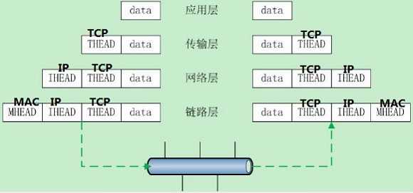 数据从上层进入到传输层,加上源端口和目标端口成为数据段(如果是UDP则成为数据报),再进入网络层加上源IP和目标IP成为数据包,再进入链路层加上源MAC地址和目标MAC地址成为数据帧,这段过程是一种"加头"封装数据的过程。数据经过网络传输到达目标主机后,逐层"剃头"解包,最终得到data纯数据内容。
