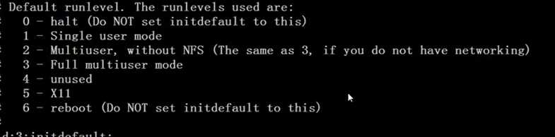 6:重启模式,默认运行级别不能设为6,否者不能正常启动,就会一直开机重启开机重启。