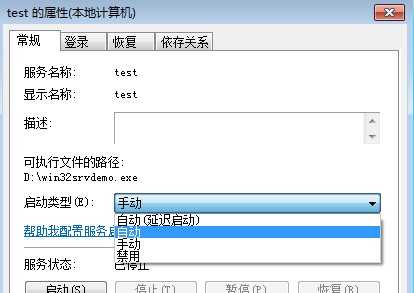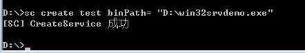 然后开始->运行->cmd->回车,输入 sc create test binPath= 编译成功后的可执行文件的路径回车就创建了一个服务.