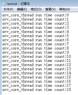 PS:该服务每隔5秒往d:/test.txt 写入一条记录你的代码就应该加在srv_core_thread中,当然你也可以添加多个类似srv_core_thread的线程.