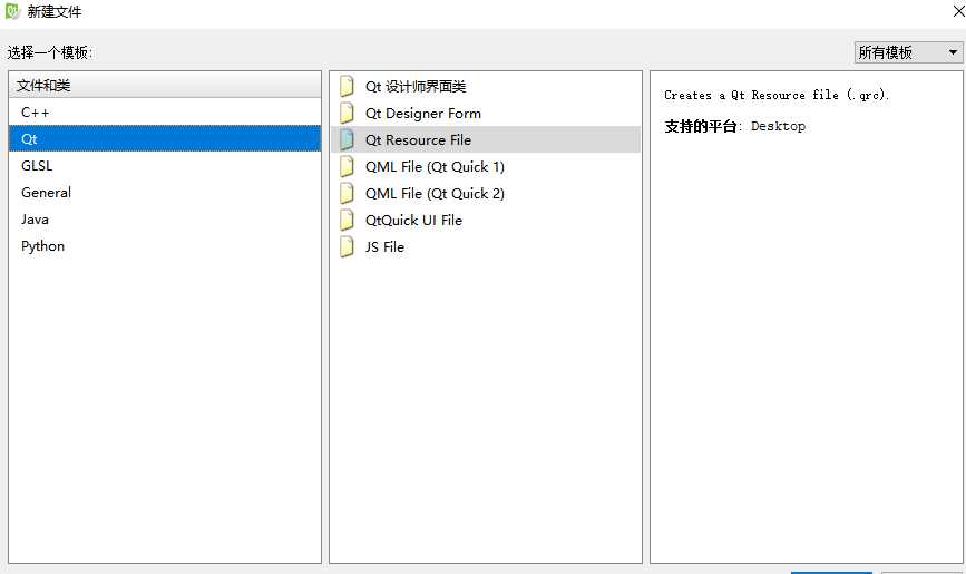 首先先创建一个新项目,在ui文件中添加三个QLabel控件,分别用来显示文本、图片、动画。然后将资源文件导入到项目中,导入步骤如下所示:右键项目->选择添加新文件之后,会弹出如下界面: