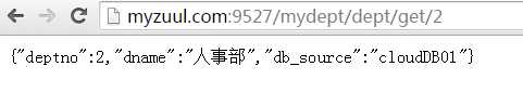 <2> 使用路由映射路径可以正常访问:http://myzuul.com:9527/mydept/dept/get/2