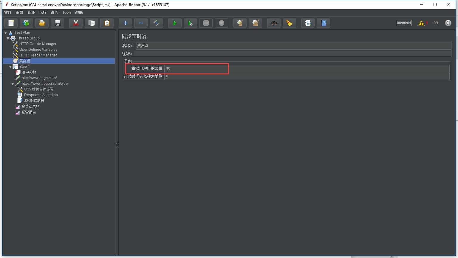 注意:集合点要放在取样器上面!性能测试中用来设置并发量