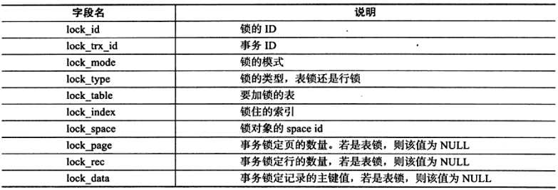 innodb_locks表的结构(可以查看锁的情况,当事务较小时,用户可以认为的只管判断,如果事务很大,则认为判断就不好判断了):