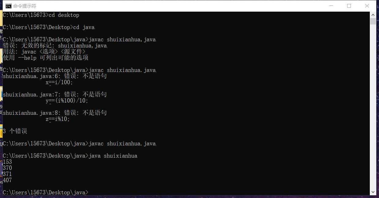 1.打印输出所有的“水仙花数”,所谓“水仙花数”是指一个3位数,其中各位数字立方和等于该数本身。例如,153是一个“水仙花数”。
