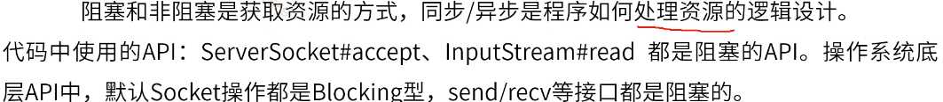 BIO:blocking IO,资源不可用时,IO请求一直阻塞,直到收到反馈结果(有数据或超时)。