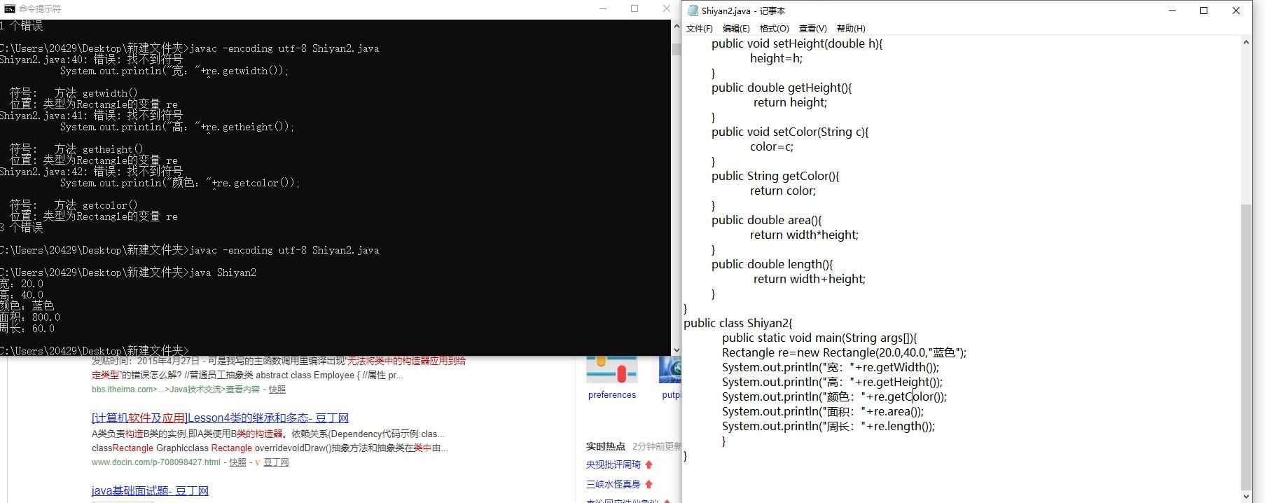 1. 写一个名为Rectangle的类表示矩形。其属性包括宽width、高height和颜色color,width和height都是double型的,而color则是String类型的。要求该类具有: